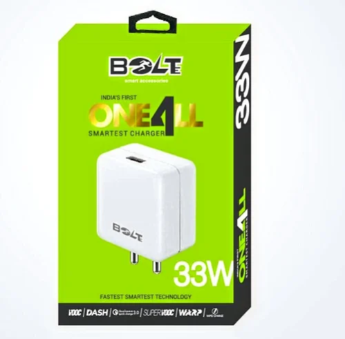 The Bolt 33W Type-C Charger is a robust and efficient charging solution designed for devices that support Type-C connectivity. With a powerful 33W power output, this charger aims to deliver fast and reliable charging for various devices, including smartphones, tablets, and other gadgets. The Type-C connector ensures broad compatibility with modern devices. The compact and portable design makes it suitable for use at home, in the office, or while on the go. Whether you need to charge your smartphone quickly or power up other Type-C devices, the Bolt 33W Type-C Charger provides a reliable and convenient charging experience.