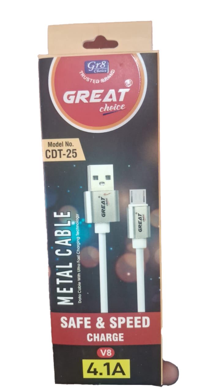 The Great Choice CDT-25 V8 4.1A is a high-performance charging cable designed for devices that use the V8 connector. With an impressive 4.1A power output, this cable ensures fast and reliable charging for smartphones and other gadgets featuring the V8 port. The cable's durable construction and enhanced charging capabilities make it a practical accessory for users who prioritize both durability and speed in their charging cables. The V8 connector is widely compatible with devices that feature this port, making the Great Choice CDT-25 V8 4.1A a reliable and efficient solution for users seeking a high-performance charging cable for their V8-compatible devices.