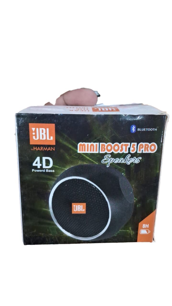 The JBL Mini Boost 5 Pro Bluetooth Speaker is a compact audio powerhouse designed to deliver exceptional sound in a sleek and portable form. With advanced Bluetooth technology, this speaker ensures seamless wireless connectivity to your devices, providing a hassle-free and on-the-go audio experience. Despite its small size, the Mini Boost 5 Pro produces powerful and clear audio, creating an immersive listening environment. The modern and stylish design adds a touch of sophistication to any setting. The built-in rechargeable battery guarantees extended playtime, making it ideal for music enthusiasts who are always on the move. Elevate your portable audio with the JBL Mini Boost 5 Pro Bluetooth Speaker – a perfect combination of style and superior sound in a compact package.