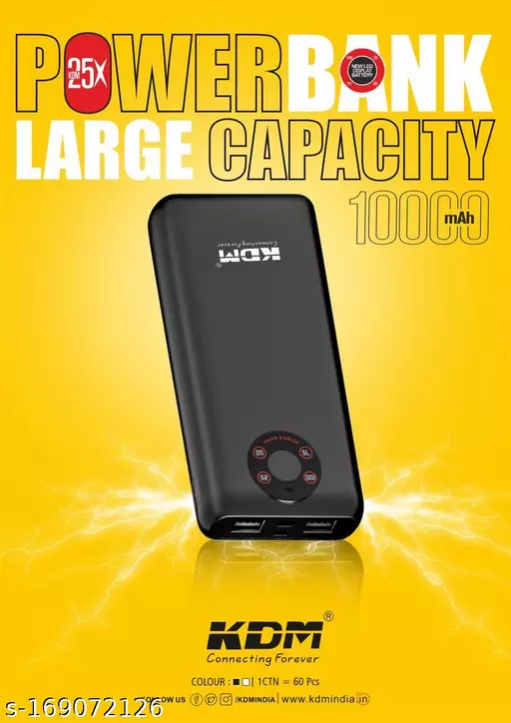 The KDM 25X 10,000mAh Powerbank is a portable and efficient charging solution for your devices on the go. With a robust 10,000mAh capacity, it ensures reliable power for multiple charges. The sleek design enhances portability, allowing you to carry it conveniently in your pocket or bag. Equipped with advanced charging technology, the KDM 25X provides efficient and quick charging for various devices. Whether you're traveling, commuting, or need a backup power source, this powerbank offers a reliable and compact solution to keep you connected and charged throughout your day.