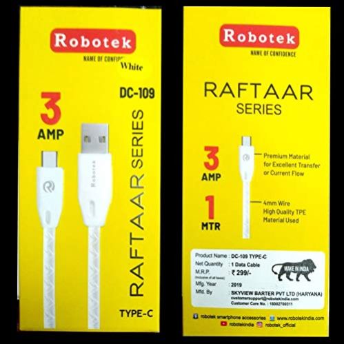 The Robotek DC-109 3A Type C Cable is a high-quality charging cable tailored for Type C-compatible devices. With a robust 3A output, this cable ensures fast and efficient charging, providing a quick power boost to your devices. The DC-109 cable is designed for durability, offering a reliable and sturdy solution for your charging needs. Upgrade your charging experience with the Robotek DC-109 3A Type C Cable – a dependable and efficient accessory for powering up your devices.