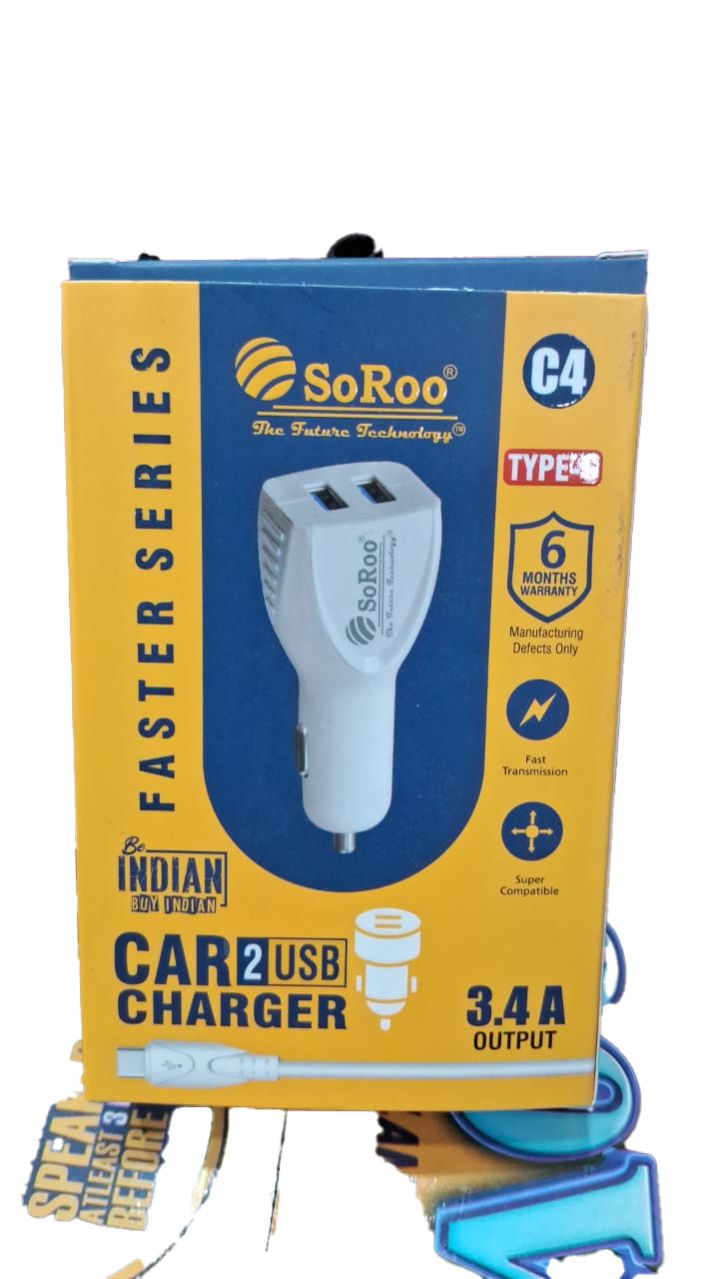 The SoRoo C4 Car Charger 3.4A Type C is a high-performance charging accessory crafted for in-car use. With a robust 3.4A output, this car charger ensures fast and efficient charging for Type C-compatible devices, such as smartphones and tablets. The C4 model features a compact and user-friendly design, making it convenient for on-the-go charging. Equipped with a Type C connector, it ensures compatibility with a wide range of modern devices. The SoRoo C4 Car Charger 3.4A Type C is a reliable and efficient solution for keeping your devices powered while on the road.
