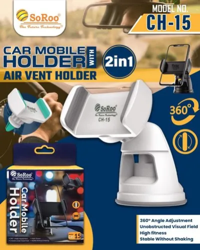 The Soroo CH-15 Car Holder is a versatile and practical accessory designed to securely hold your smartphone in your car. With a sturdy build and adjustable features, this car holder provides a stable platform for your device, ensuring a secure grip during your journeys. The CH-15 model features a user-friendly design, making it easy to install and set up. Its adjustable arms and 360-degree rotation capability offer flexibility for optimal viewing angles. The Soroo CH-15 Car Holder is a reliable and convenient solution for hands-free use of your smartphone while driving, enhancing your safety and convenience on the road.
