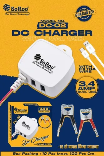 The SoRoo DC-02 3.4A Dual DC Charger is a versatile and efficient charging solution designed for devices that use DC power sources. With its dual-port design, this charger allows you to simultaneously charge two devices, such as smartphones, tablets, or other electronics, with a combined output of 3.4A. The compact and lightweight design makes it suitable for use at home, in the car, or while traveling, providing a convenient way to keep your devices powered up. The SoRoo DC-02 3.4A Dual DC Charger is a reliable and practical accessory for users who need to charge multiple devices on the go with a powerful and efficient power source.