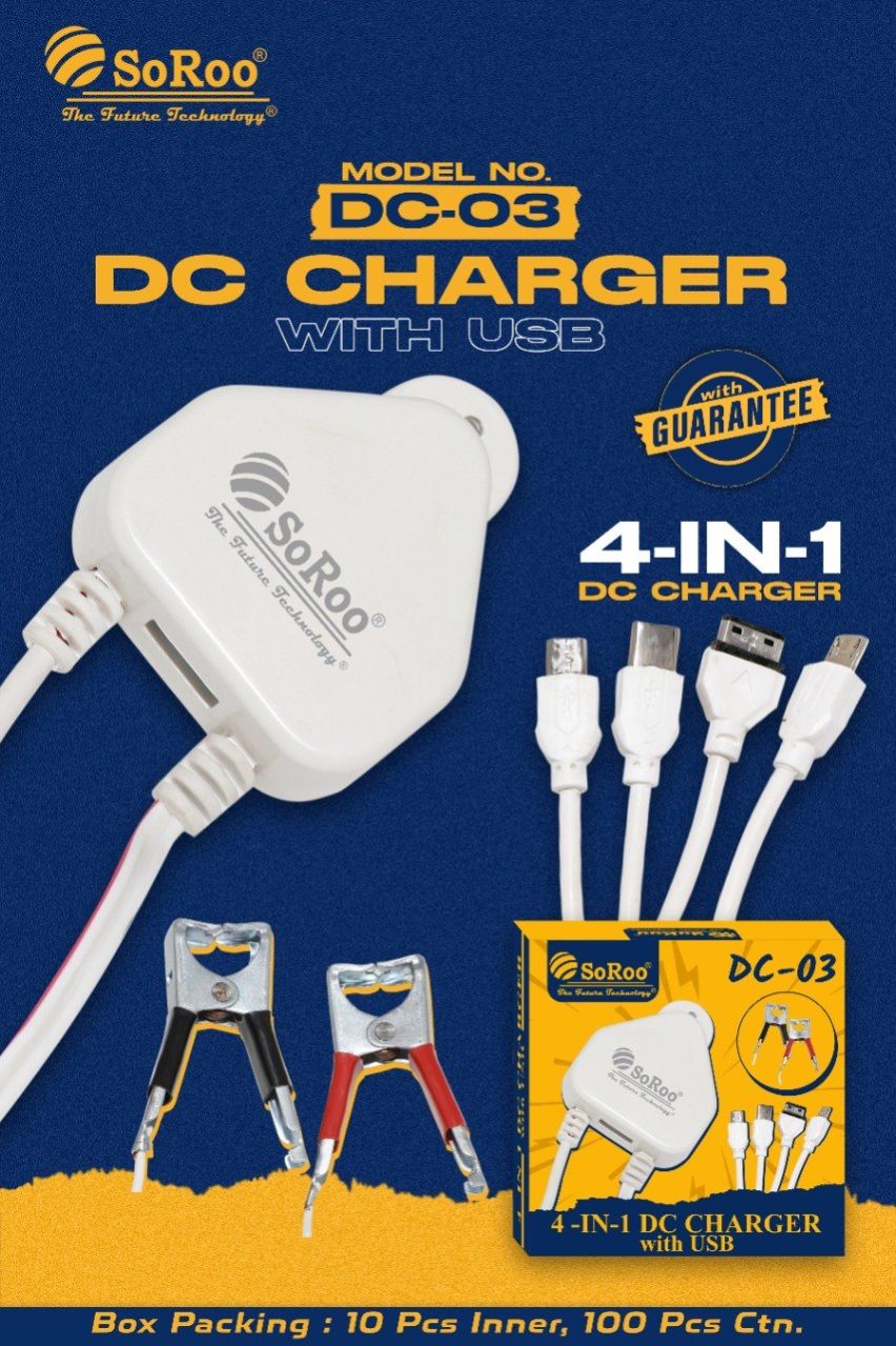 The SoRoo DC-03 4-in-1 DC Charger is a versatile and convenient charging solution designed for devices that use DC power sources. With its 4-in-1 design, this charger comes equipped with various DC connectors, allowing you to charge different devices, such as cameras, routers, or other electronics, using a single power source. The charger is suitable for use at home, in the car, or while traveling, providing a practical and space-saving way to keep your devices powered up. The SoRoo DC-03 4-in-1 DC Charger is a reliable and efficient accessory for users who require a diverse charging solution for their various DC-powered devices.