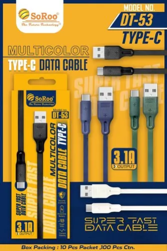The SoRoo DT-53 3.1A Type C Cable is a high-performance charging cable tailored for Type C-compatible devices. Boasting a robust 3.1A output, it facilitates rapid and efficient charging, ensuring your devices are powered up swiftly. With a blend of durability and a modern design, the DT-53 cable not only provides reliability but also adds a touch of style to your charging setup. Elevate your charging experience with the SoRoo DT-53 3.1A Type C Cable for a seamless and fast power solution.
