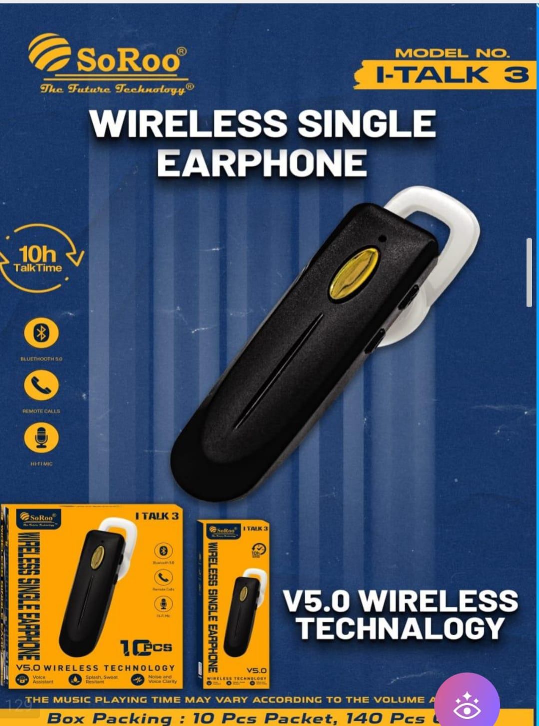 Introducing the SoRoo ITalk-3 Single Bluetooth Earphone – your compact and versatile audio companion. This sleek single earbud combines modern design with advanced Bluetooth technology, ensuring seamless connectivity for hands-free communication. With its ergonomic and comfortable fit, the ITalk-3 is perfect for extended usage during calls or while enjoying your favorite content. Elevate your audio experience with SoRoo ITalk-3, where simplicity meets performance, providing a reliable and stylish solution for your on-the-go communication and listening needs.