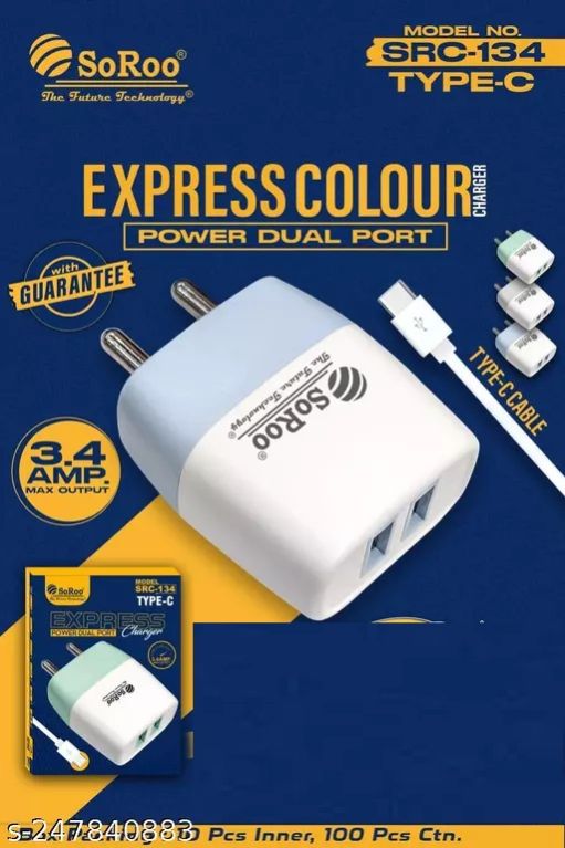 The SoRoo SRC-134 3.4A Type-C Charger is a high-powered and efficient charging solution designed for Type-C compatible devices. With a robust 3.4A output, it delivers fast and reliable charging for various smartphones and devices using the Type-C connector. The compact design ensures easy portability, making it suitable for everyday use at home or on the go. Equipped with advanced charging technology, the SoRoo SRC-134 offers a swift and dependable charging experience. Whether you're commuting, traveling, or simply need a reliable charger, this product provides a straightforward and effective solution to keep your Type-C-compatible devices charged and ready for use.