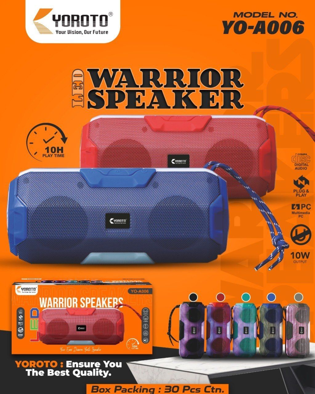 The Yoroto YO-A006 Bluetooth Speaker is a compact and versatile audio device designed for an immersive music experience. With Bluetooth connectivity, this speaker effortlessly pairs with your devices, providing a wireless and convenient audio solution. The YO-A006 delivers clear and dynamic sound, suitable for various settings. Its sleek and modern design adds a touch of style, and the built-in rechargeable battery ensures extended playtime for on-the-go use. Compact and lightweight, this speaker is easy to carry, making it an ideal choice for those who prioritize both portability and quality sound in their audio accessories. Elevate your mobile audio experience with the Yoroto YO-A006 Bluetooth Speaker.